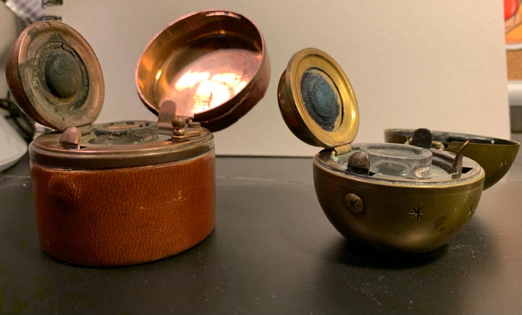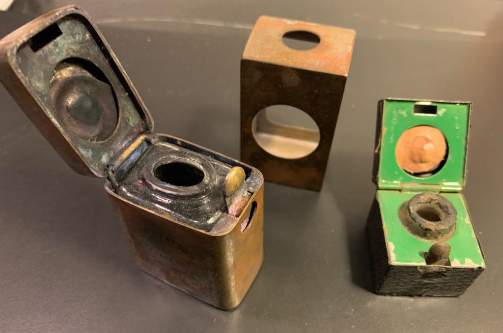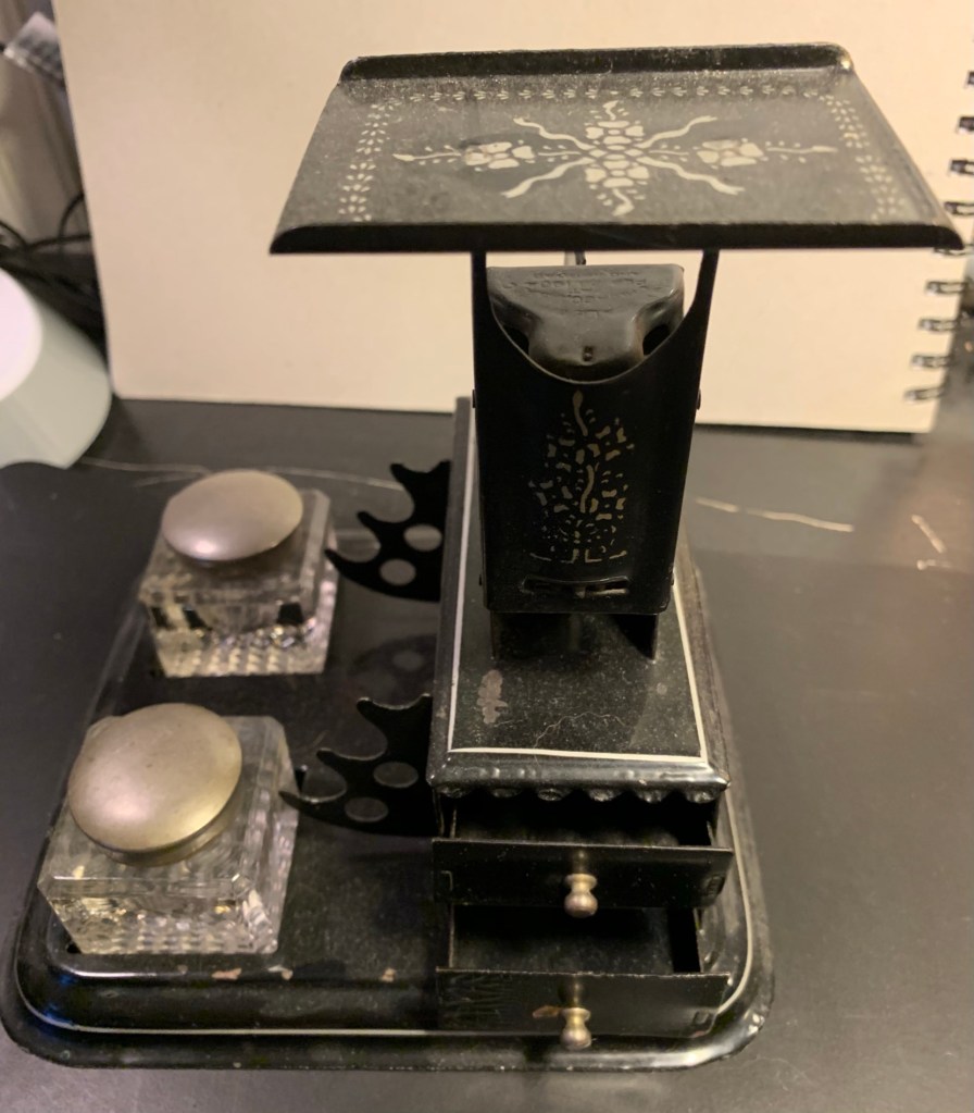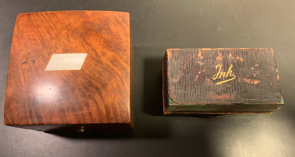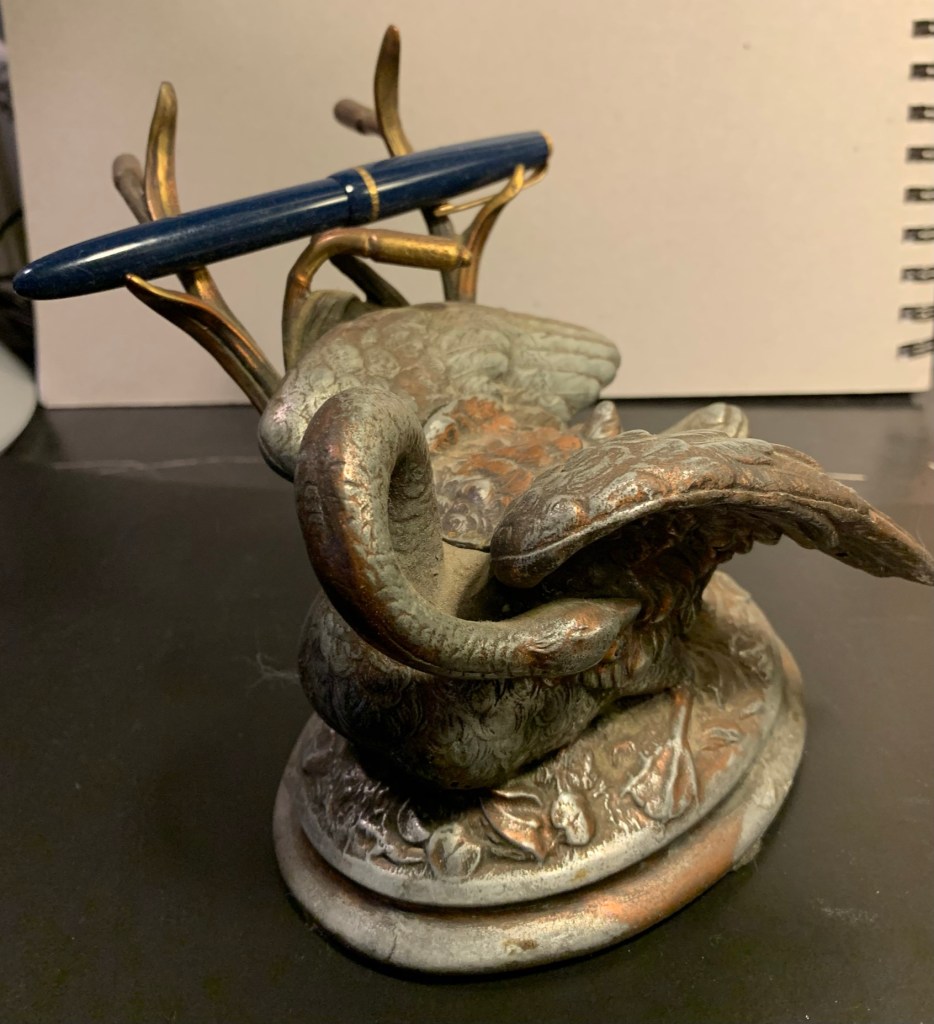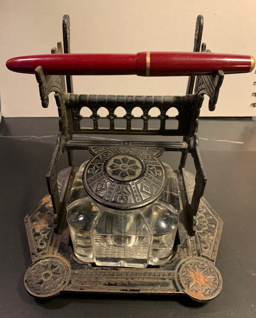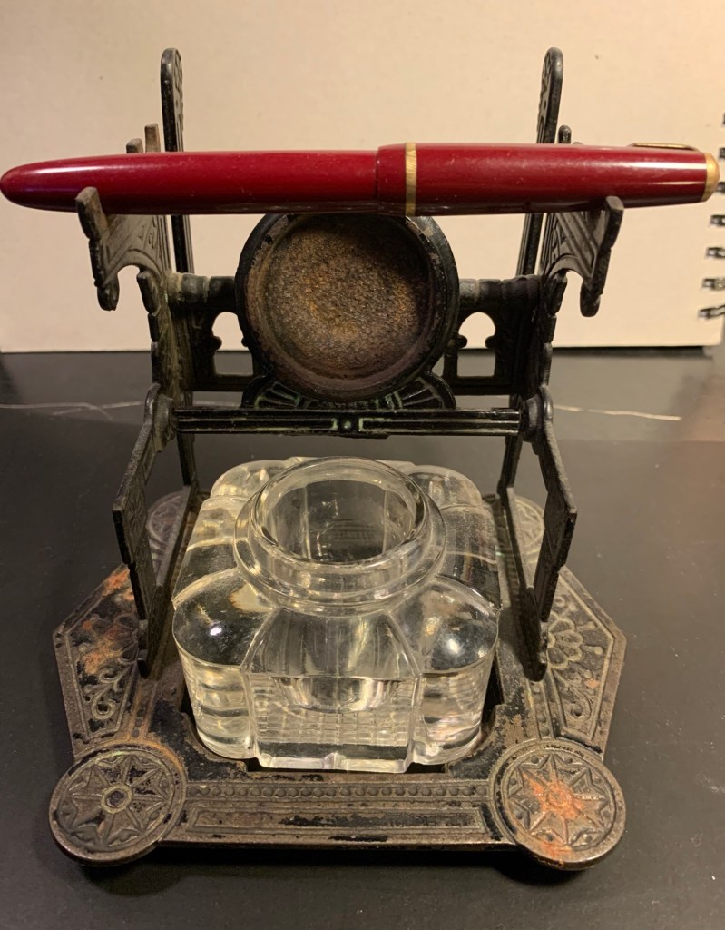 Inkwells Travel Inkwells Desk Inkwells with Pen Holders This is an inkwell celebrating the centennial of America’s founding. Inkwell, pen rests, postal scale, drawers for stamps. This has it all! Snail inkwell. One of my favorites Desk Inkwells Igloo inkwell Ink Bottles Bonus: Inkwell filler Share this: Click to share on X (Opens in new window) X Click to share on Facebook (Opens in new window) Facebook Like Loading...